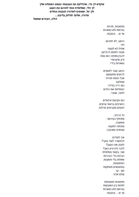 איך אפשר להסביר למישהו שכל שנה מחדש האצבעות כותבות מעצמן? שהדברים נכתבים. נאמרים. כאילו כח גדול ממני, משהו שבפנים מדבר דרכי.
